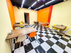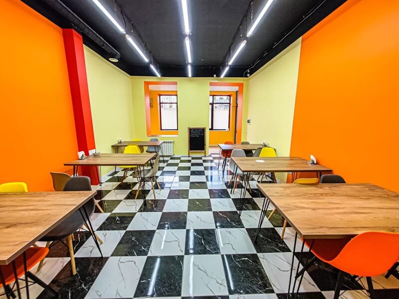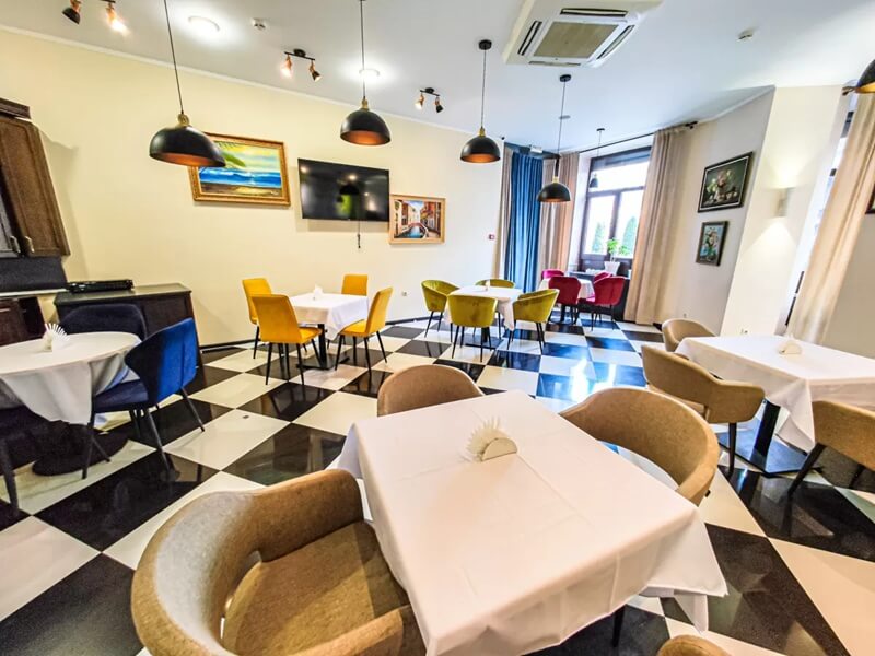 Гостям предлагается питание в ресторане «Вернисаж» по системе «шведский стол». Кроме того, для отдыхающих работает кафе «Вернисаж», где блюда подаются по системе меню-заказ.