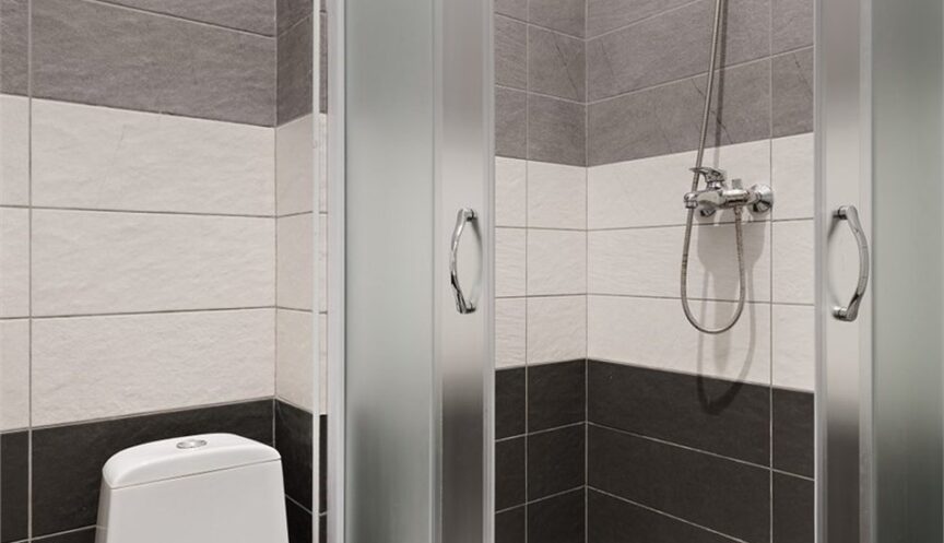 Санузел оснащён душевой кабиной, в нём предоставляются туалетные принадлежности и фен.