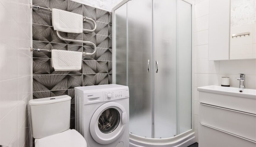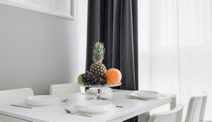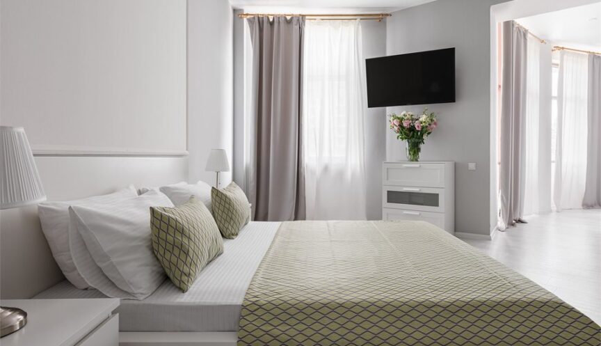 В номере есть вешалка для одежды, раскладной диван, зеркало, двуспальная кровать с прикроватными тумбочками, стол, стулья и шкаф. Также имеется мини-кухня, оборудованная микроволновой печью, стиральной машиной, сушилкой для белья, холодильником и электрочайником с чайным набором посуды.
